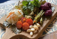 300 г • грузинские разносолы: гурийская капуста, квашеная капуста, бочковой огурец, томат соленый, томат черри, перец чили, чеснок, лук