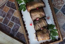 200 г • баклажан и перец обжаренный на гриле с пряным соусом, зеленью и Грузинскими специями