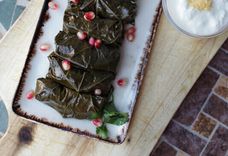 200/50 г • традиционное блюдо из фаршированных нежным мясным фаршем виноградных листьев с зеленью и специями. Подается с чесночным мацони