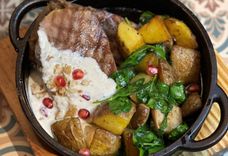 170/215/50 г • обжаренный на гриле нежный говяжий язык с жареным картофелем, грибами и шпинатом